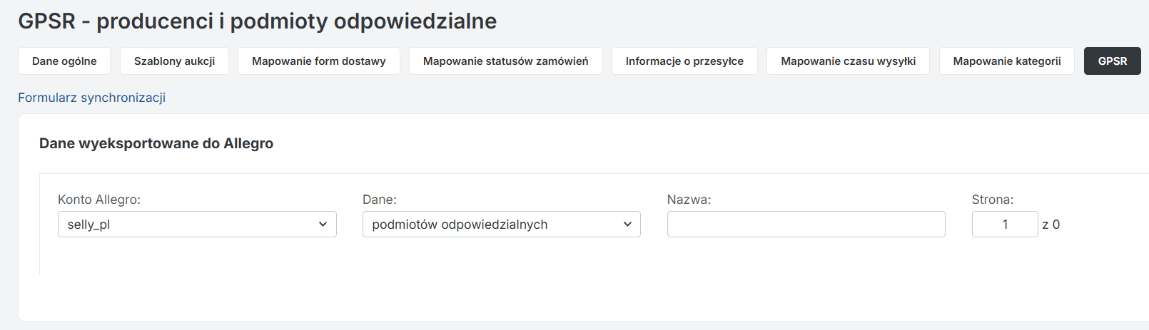 Dodaliśmy nową zakładkę GPSR w konfiguracji integracji Allegro. Dzięki tej funkcji możesz łatwo zarządzać danymi dotyczącymi producentów i podmiotów odpowiedzialnych bezpośrednio w integracji. Nowa zakładka umożliwia: