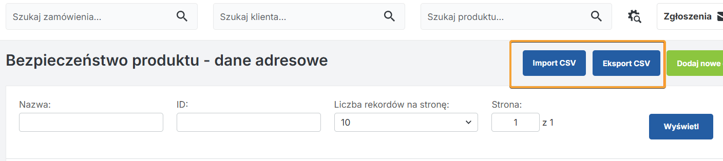Wprowadziliśmy możliwość importu i eksportu danych dotyczących producentów i dystrybutorów w module GPSR. Dzięki tej funkcji możesz w łatwy sposób masowo dodawać i aktualizować informacje o podmiotach.