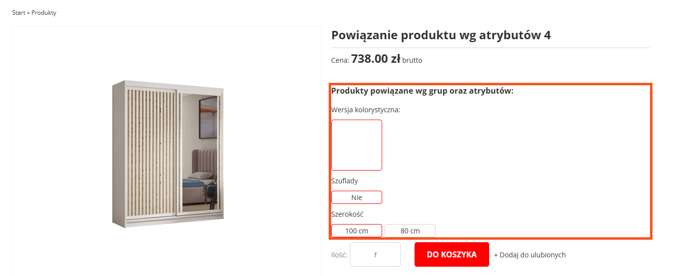 - Dynamiczne powiązania: Produkty są powiązane w systemie na podstawie kodu powiązania, co umożliwia łatwe przełączanie między wariantami w sklepie internetowym.