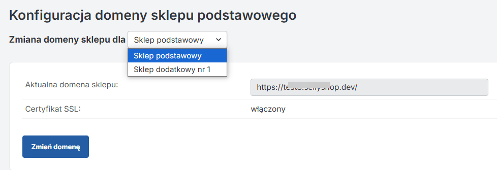 Od teraz w panelu administracyjnym możesz zarządzać podłączeniem domeny nie tylko dla sklepu podstawowego, ale również dla sklepów dodatkowych.