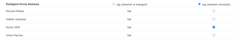 Rozbudowa integratora o możliwość przypisywania indywidualnych form dostaw w produktach