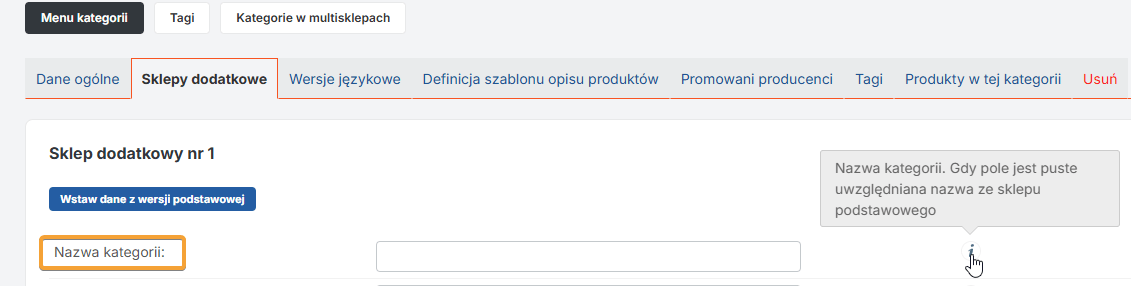 - Nowe pole pozwala na nadanie unikalnej nazwy kategorii dla sklepów dodatkowych.