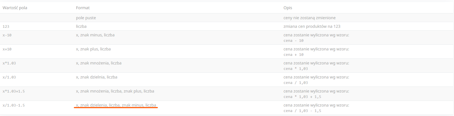 Masowa aktualizacja cen produktów przez API umożliwia zmianę 1 requestem do 1000 cen produktów. Więcej informacji na ten temat znajduje się w naszej dokumentacji REST API