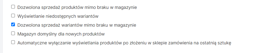 Dozwolona sprzedaż wariantów mimo braku w magazynie