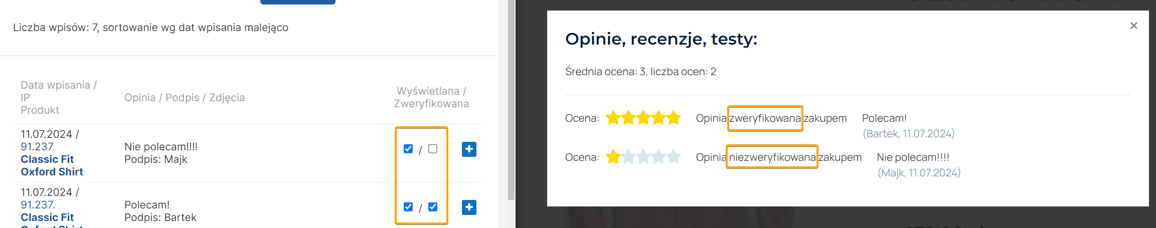 Status opinii wpływa na to, jak jest ona prezentowana na froncie sklepu: