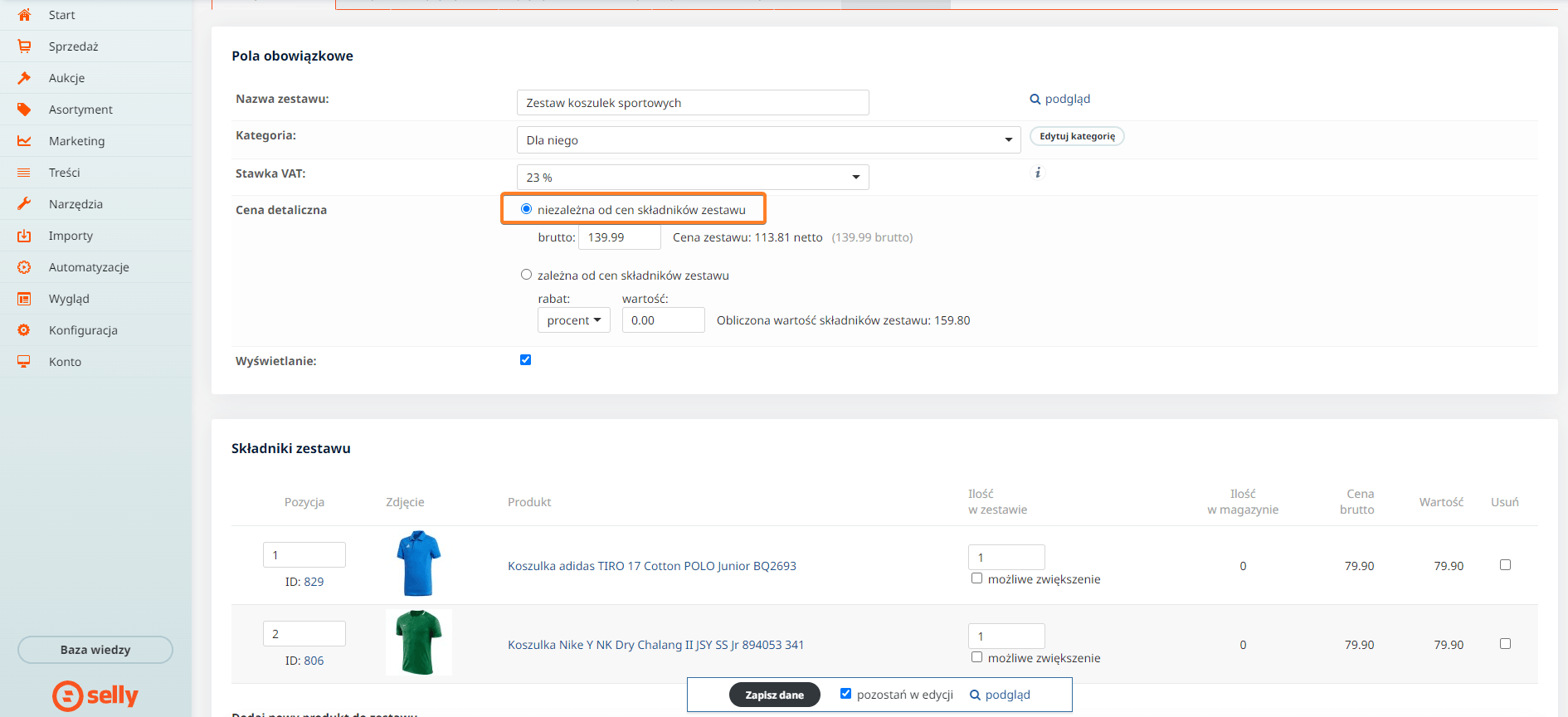 Tworzymy zestaw składający się z dwóch produktów (Instrukcja dotycząca tworzenia zestawów produktów)