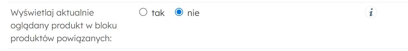 Wprowadzono nową zmienną konfiguracyjną pozwalającą na ukrycie aktualnie oglądanego produktu w sekcji produktów powiązanych. Administrator może teraz zdecydować, czy produkt, na którego karcie znajduje się klient, ma być ponownie wyświetlany w bloku produktów powiązanych.