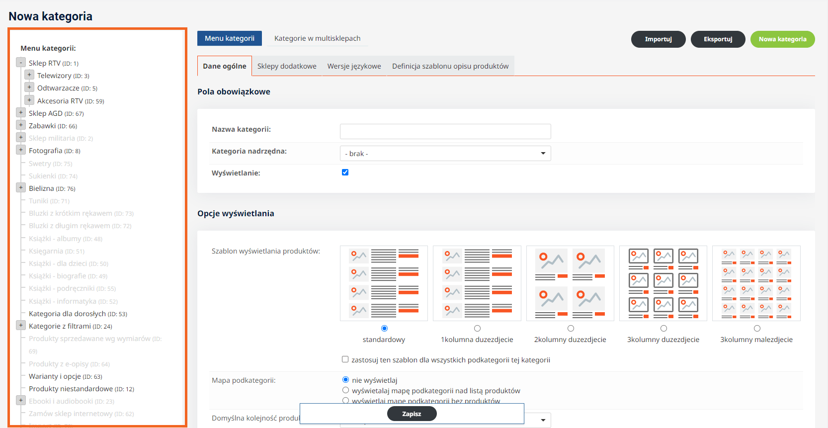 Zmiana w wyglądzie oraz edycji drzewa kategorii