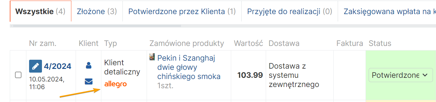 Dodaliśmy ikonkę Allegro na kompaktowej liście zamówień, aby ułatwić identyfikację zamówień pochodzących z tego kanału sprzedaży.
