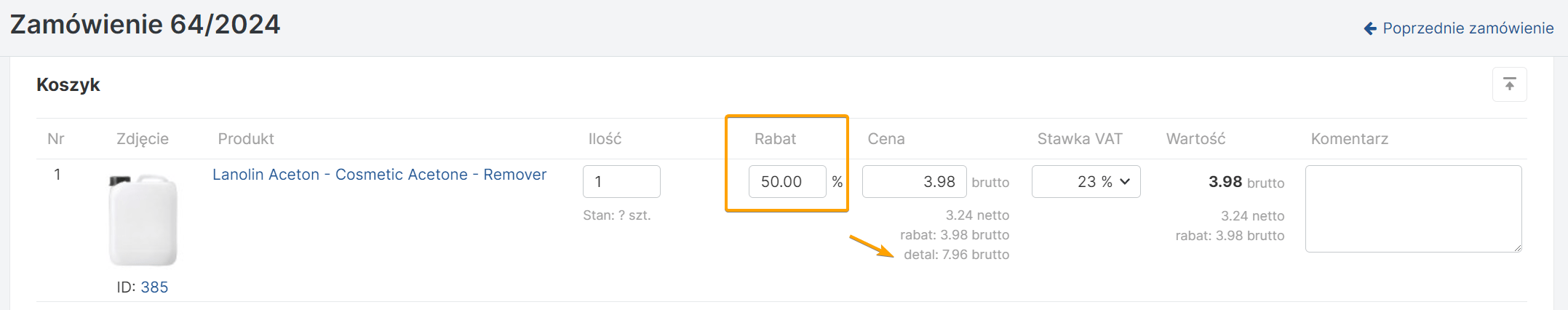 • Przy każdym produkcie znajdziesz teraz pole procentowego rabatu obok kwotowego.
