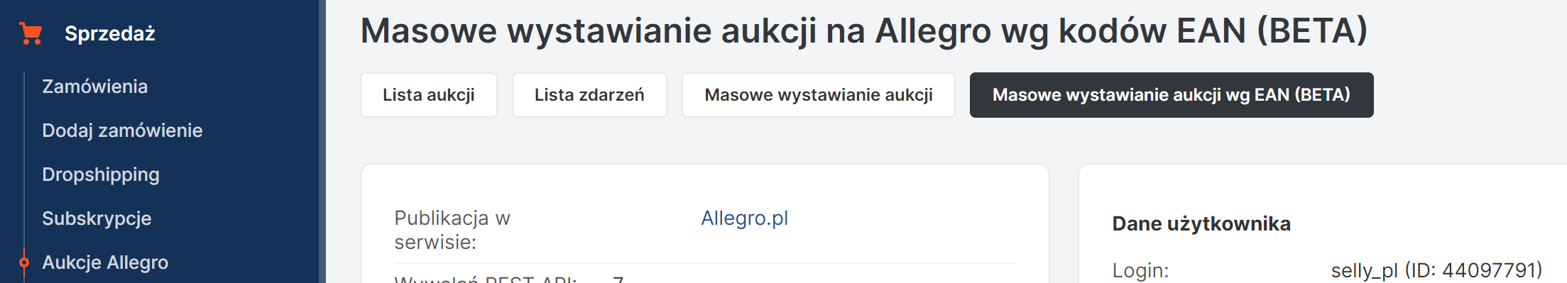 Masowe wystawianie aukcji Allegro wg. kodu EAN