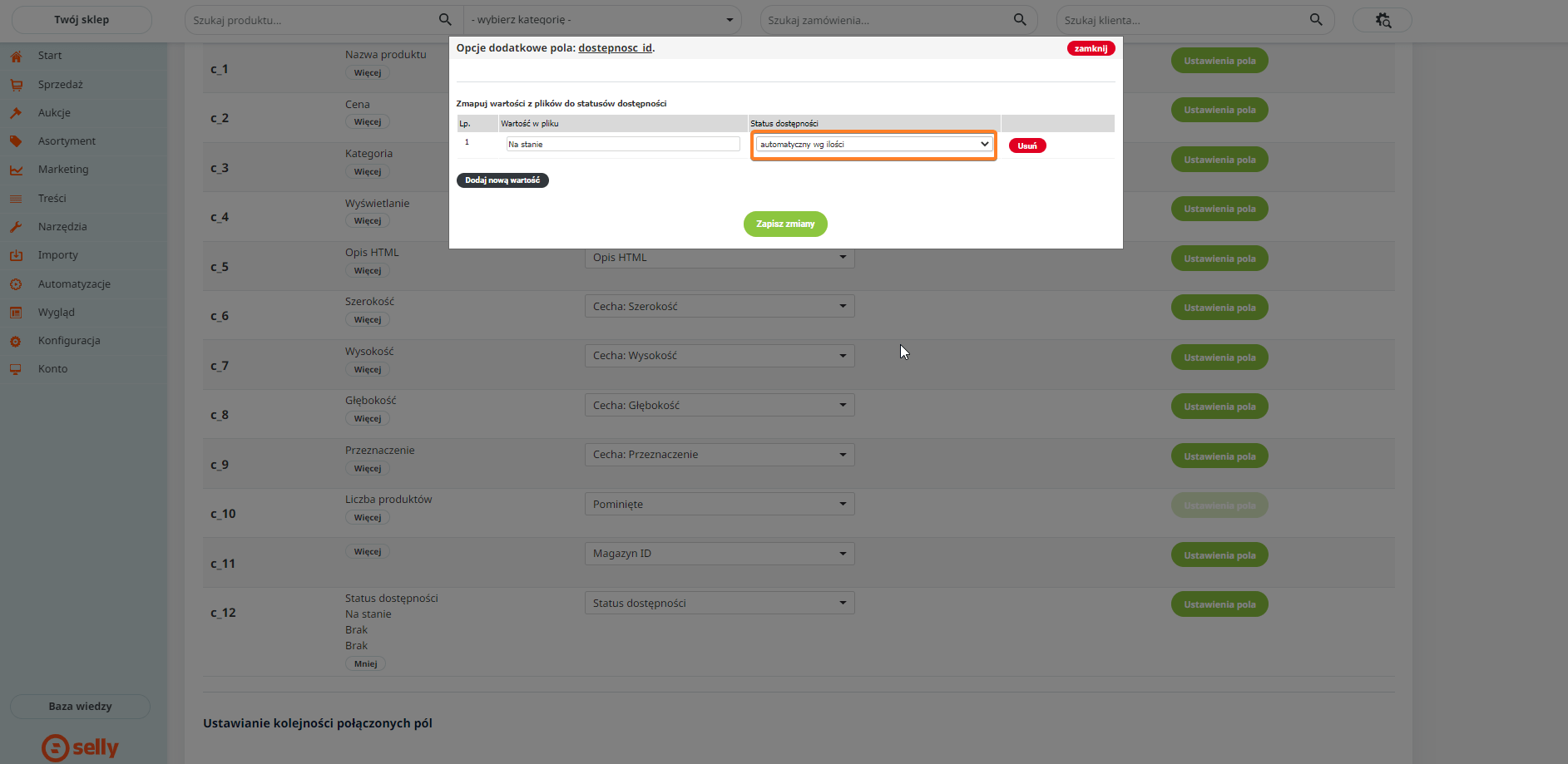 W ustawieniach pola „Status dostępności” w Integratorze XML/CSV dodaliśmy możliwość zmapowania automatycznego statusu dostępności z wybranym statusem w pliku XML lub CSV.