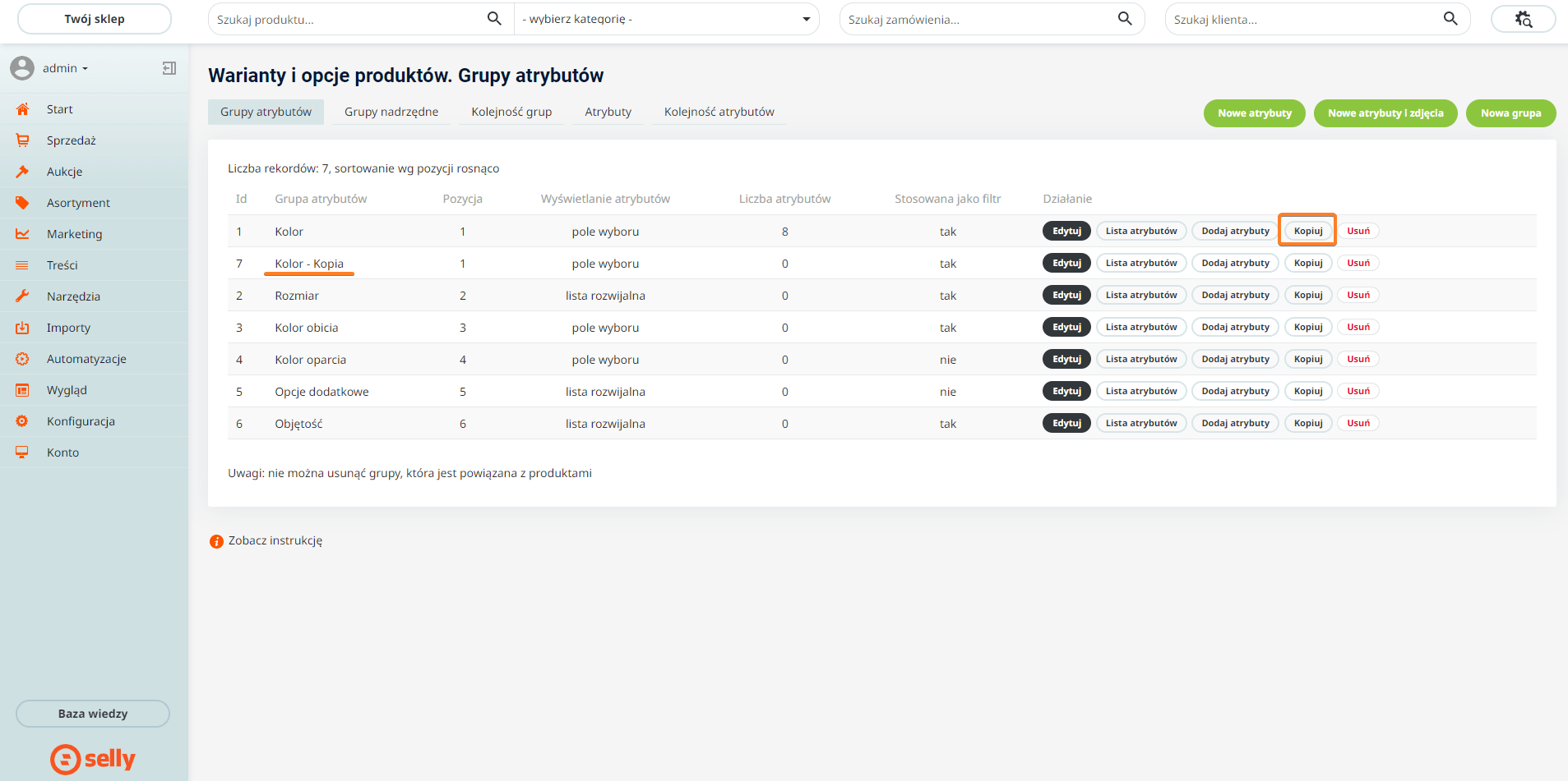Aby usprawnić pracę z atrybutami produktów, dodaliśmy możliwość kopiowania grup atrybutów w module Asortyment/Warianty i opcje produktów. Teraz jednym kliknięciem można skopiować wybraną grupę atrybutów, w tym ustawienia danej grupy i atrybuty tej grupy.