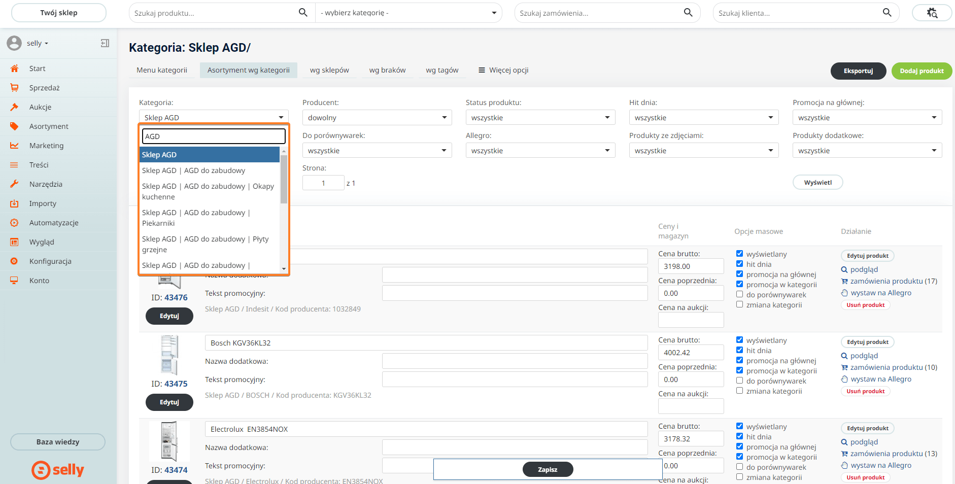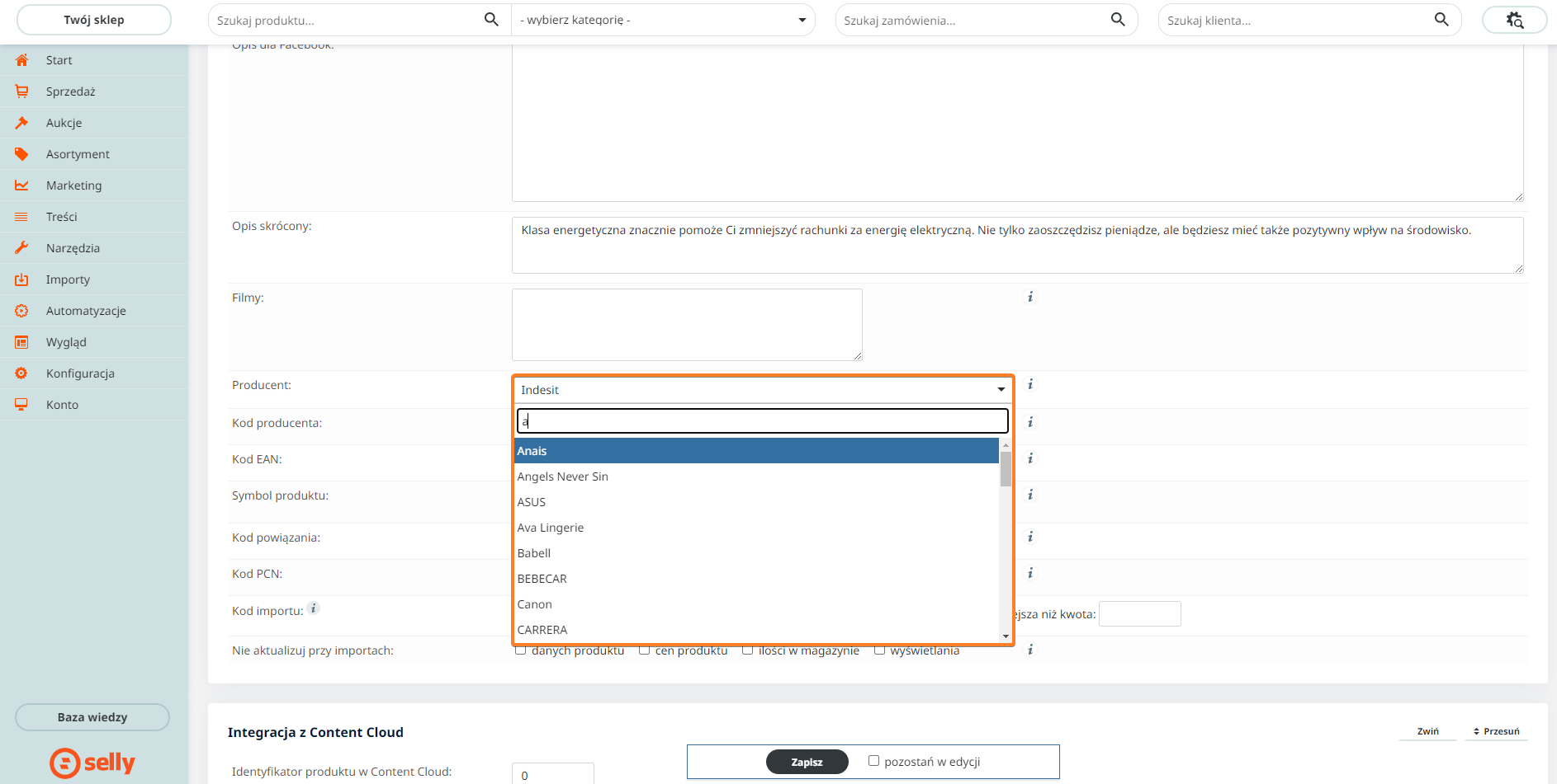 Do list kategorii oraz producentów w panelu administracyjnym, dodaliśmy pole wyszukiwania, co znacznie ułatwi wyszukanie konkretnej kategorii oraz producenta. Pole dodane zostało między innymi w: wyszukiwarce produktów w module Asortyment/produkty, w edycji produktu czy module Sprzedaż/Zamówienia.
