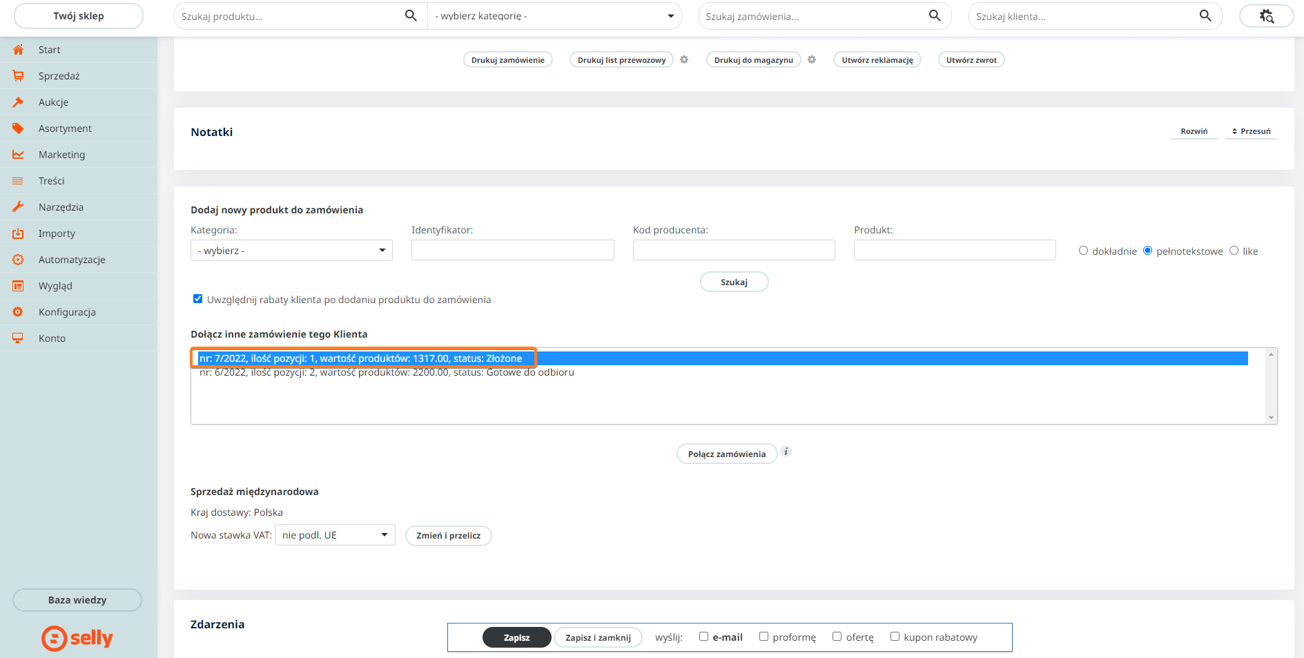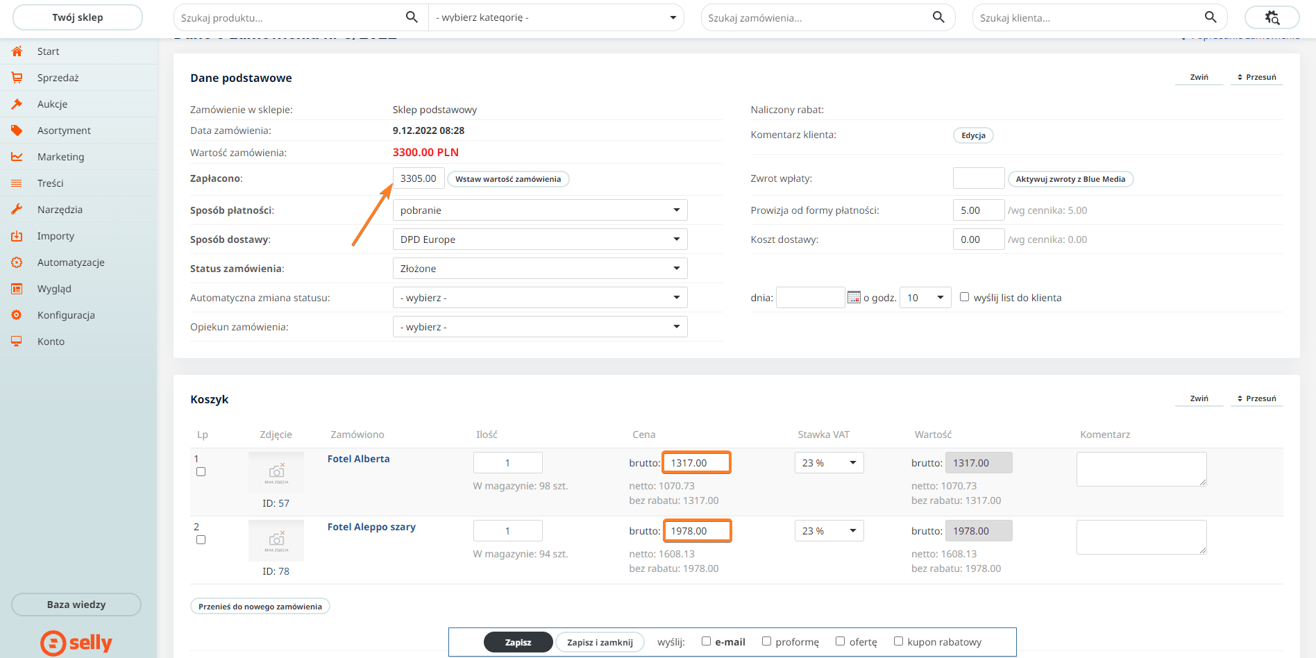 Usprawniliśmy funkcjonalność łączenia zamówień o sumowanie zapłaconych kwot w polu „Zapłacono” w sekcji „Dane podstawowe” zamówienia.