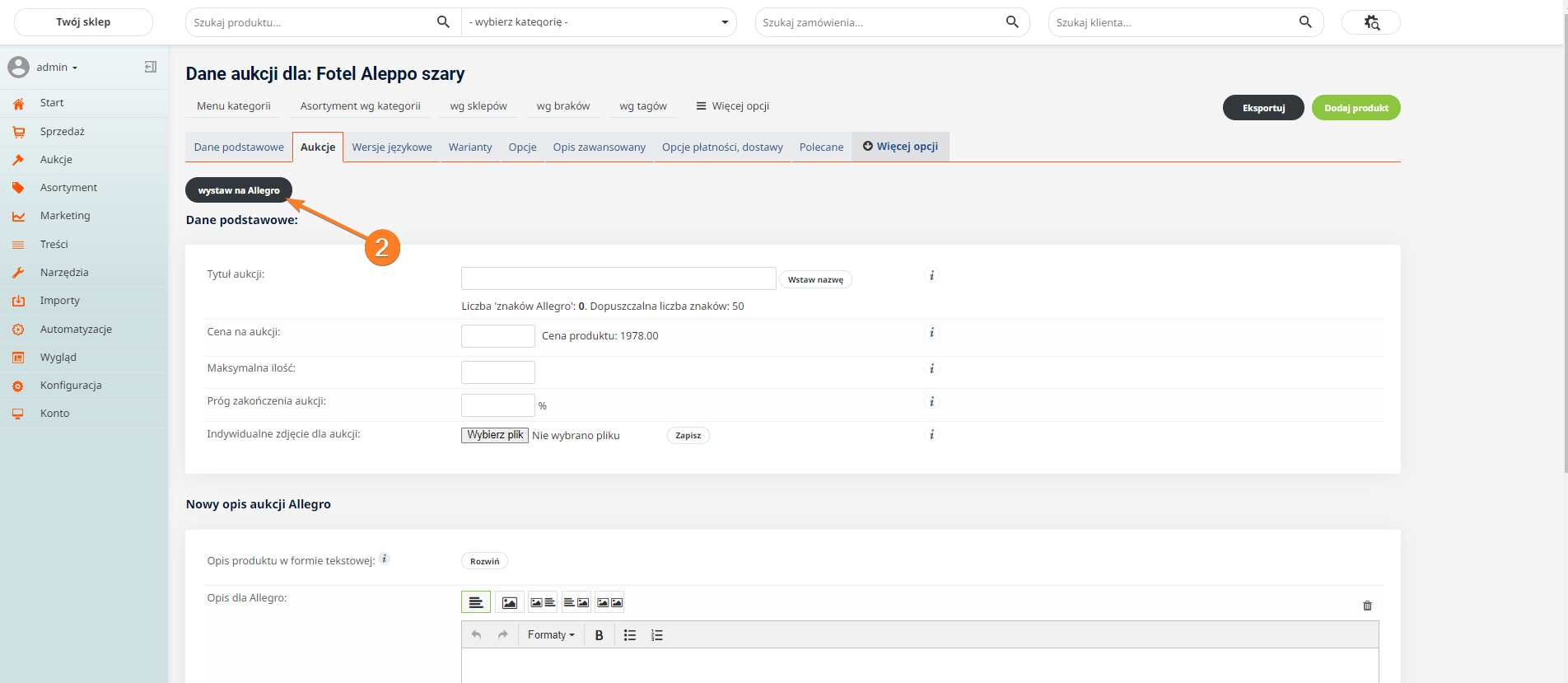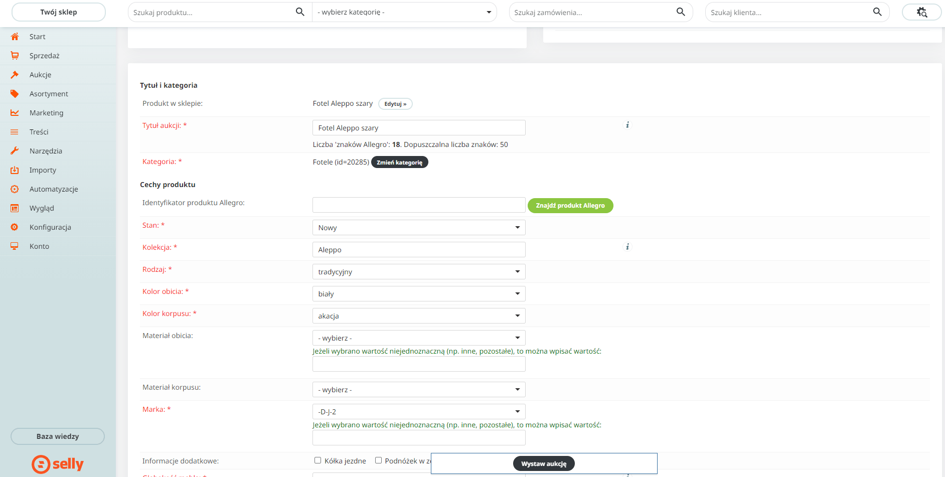 Gdy kategoria będzie poprawnie zmapowana, po kliknięciu w przycisk „wystaw na Allegro” zostaniemy przeniesieni do formularza wystawiania aukcji Allegro.