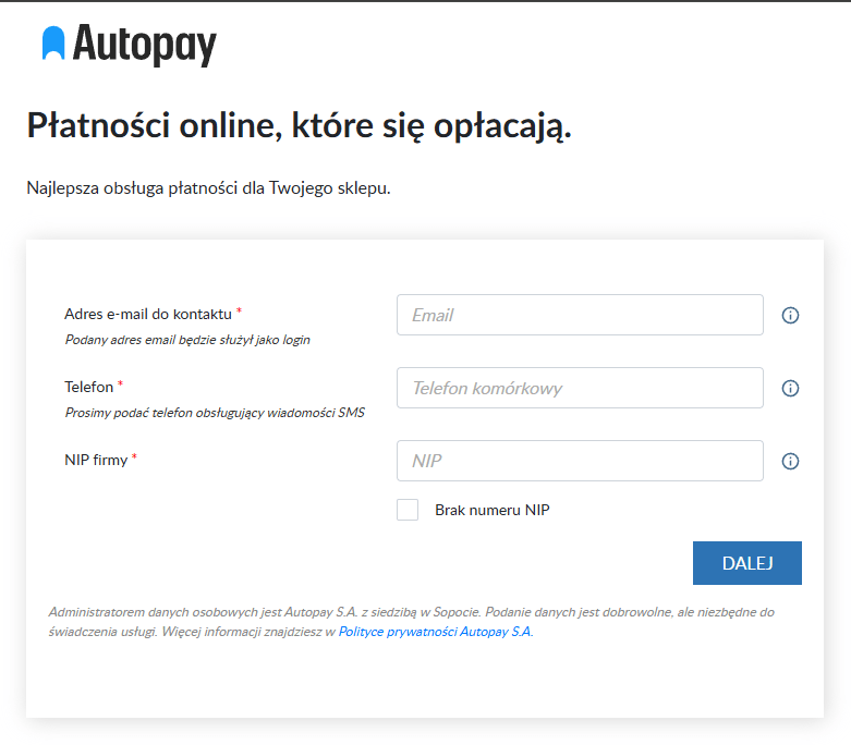 2. Po zapisaniu danych użytkownik zostaje przekierowany do formularza rejestracyjnego Autopay.