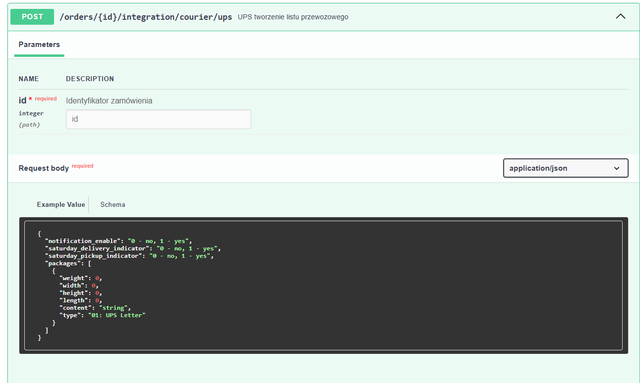 Dodanie w API obsługi pola ilość paczek UPS