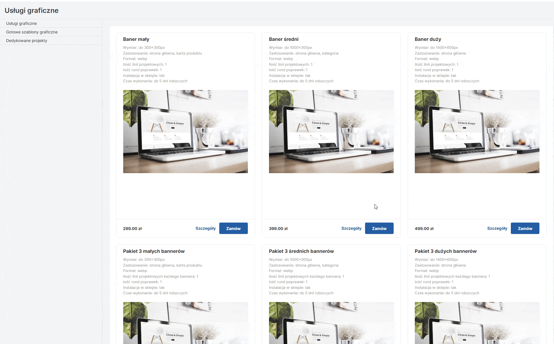 Dodaliśmy nową sekcję w menu DODATKI I USŁUGI o nazwie Usługi graficzne, która obejmuje szeroką ofertę projektów graficznych zgodnie z zapotrzebowaniem naszych klientów. Nowa struktura menu została również zaktualizowana, aby ułatwić dostęp do wszystkich usług graficznych.