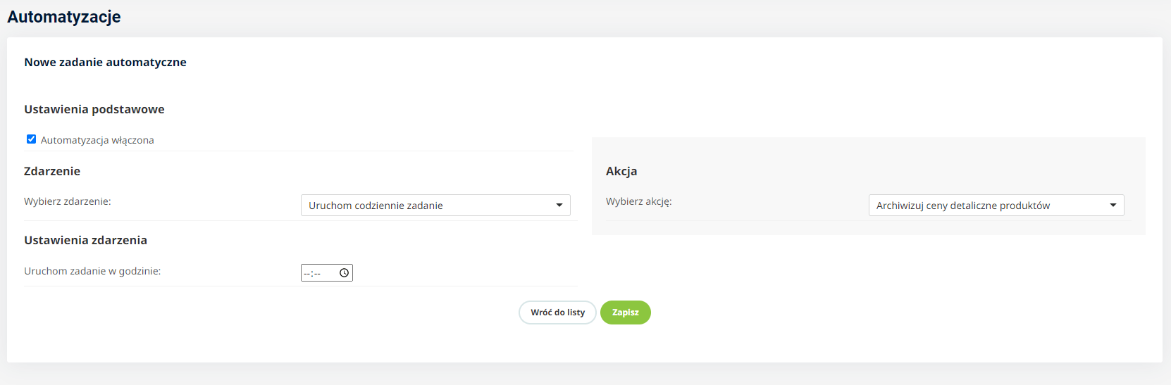 Moduł historii ceny – umożliwia dodanie na karcie produktu najniższej ceny z ostatnich 30 dni. Zarchiwizowaną cenę można dodać ręcznie w edycji produktu, przechodząc do nowej zakładki „Historia ceny” lub automatycznie wykorzystując do tego nowy moduł „Automatyzacje” oraz już gotową automatyzacje „Archiwizuj ceny detaliczne produktów”