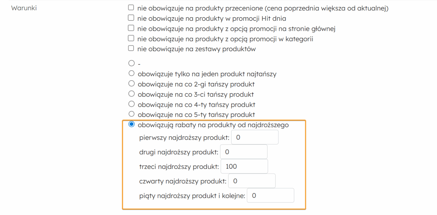 Dzięki temu można tworzyć zaawansowane promocje, np. rabat 100% na trzeci najdroższy produkt (konfiguracje typu 2+1), rabaty progresywne lub akcje wielopoziomowe., 3+1, czy rabaty progresywne.