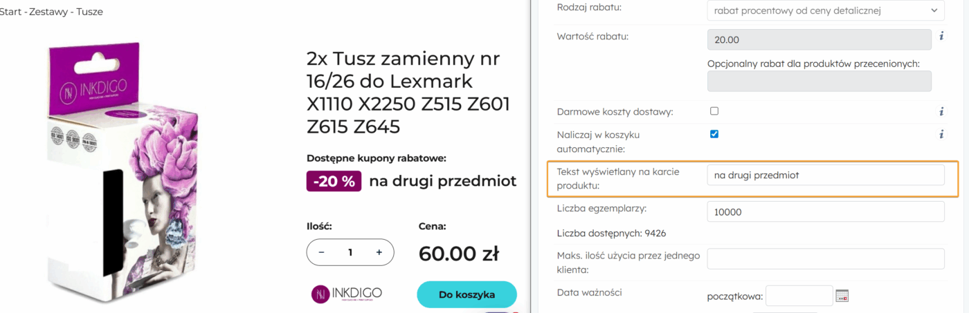 Dodano możliwość automatycznego wyświetlania kodów rabatowych bezpośrednio na karcie produktu. Funkcja jest dostępna jako opcja wdrażana indywidualnie.