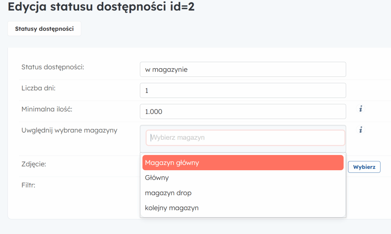 Statusy dostępności – możliwość przypisywania do wybranych magazynów