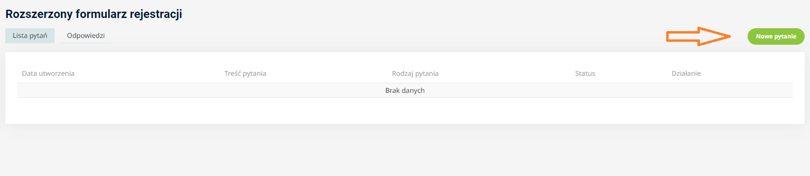 Przechodzimy do modułu Sprzedaż/Rozszerzony formularz rejestracji i klikamy przycisk „Nowe pytanie”.