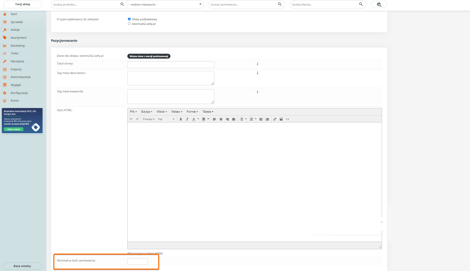 Dodanie możliwości definiowania pola „Minimalna ilość zamówienia” w multisklepach.
