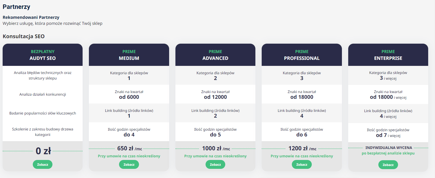 We współpracy z firmą ICEA, przygotowaliśmy dla naszych klientów specjalną ofertę obejmującą pomoc w zakresie SEO, SXO, Google Ads. Cała oferta znajduje się w panelu administracyjnym sklepu w module Konto/Usługi partnerów.