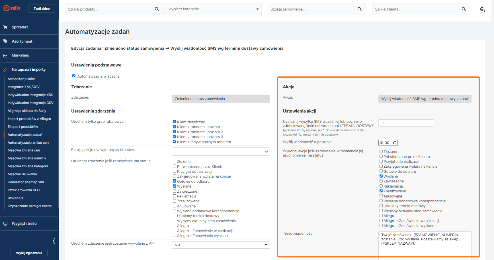Nowa automatyzacja – wiadomość SMS uzależniona od terminu dostawy w zamówieniu
