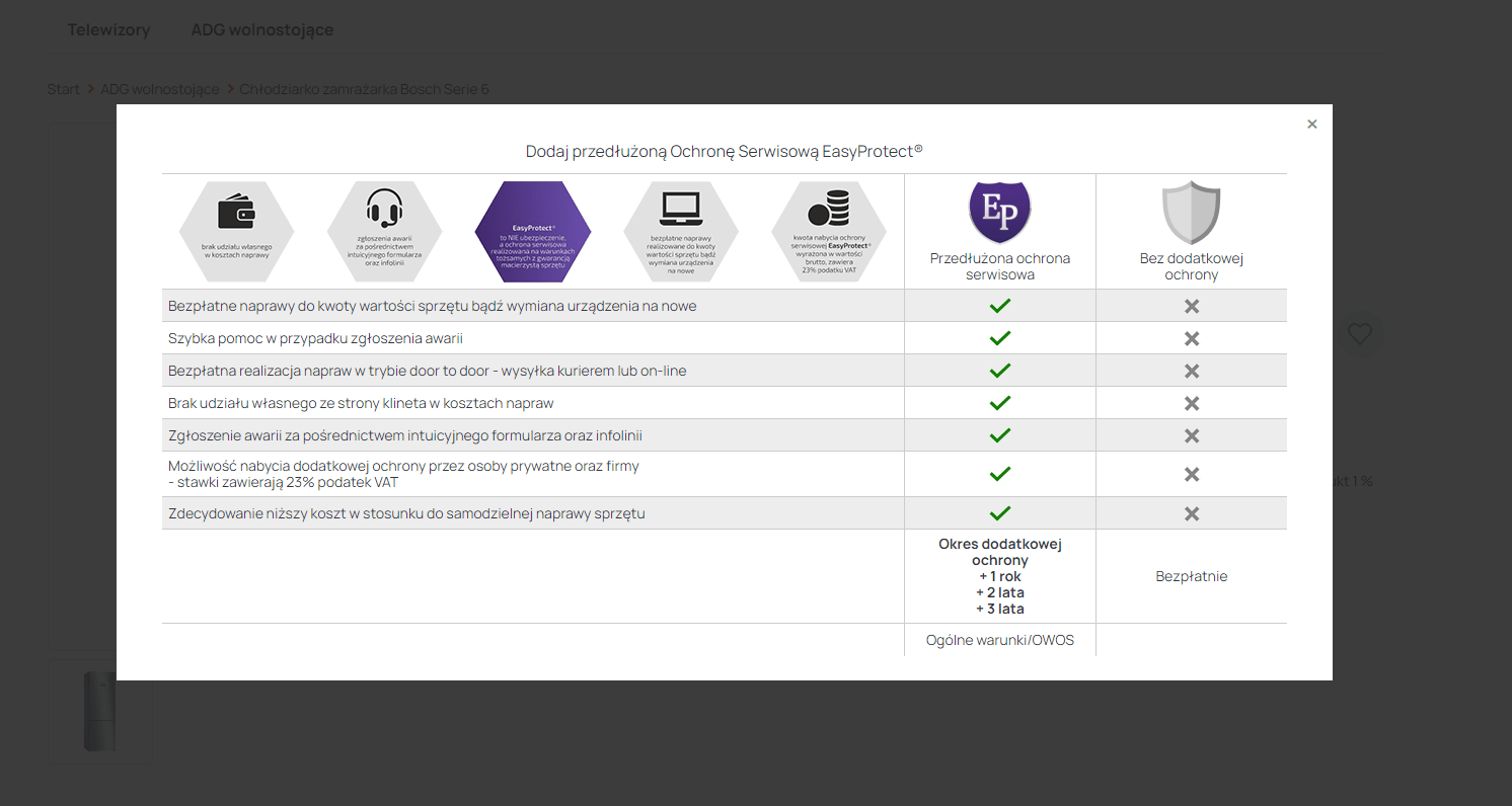Po kliknięciu w „Dowiedz się więcej” pojawi się pop-up ukazujący szczegóły oferty: