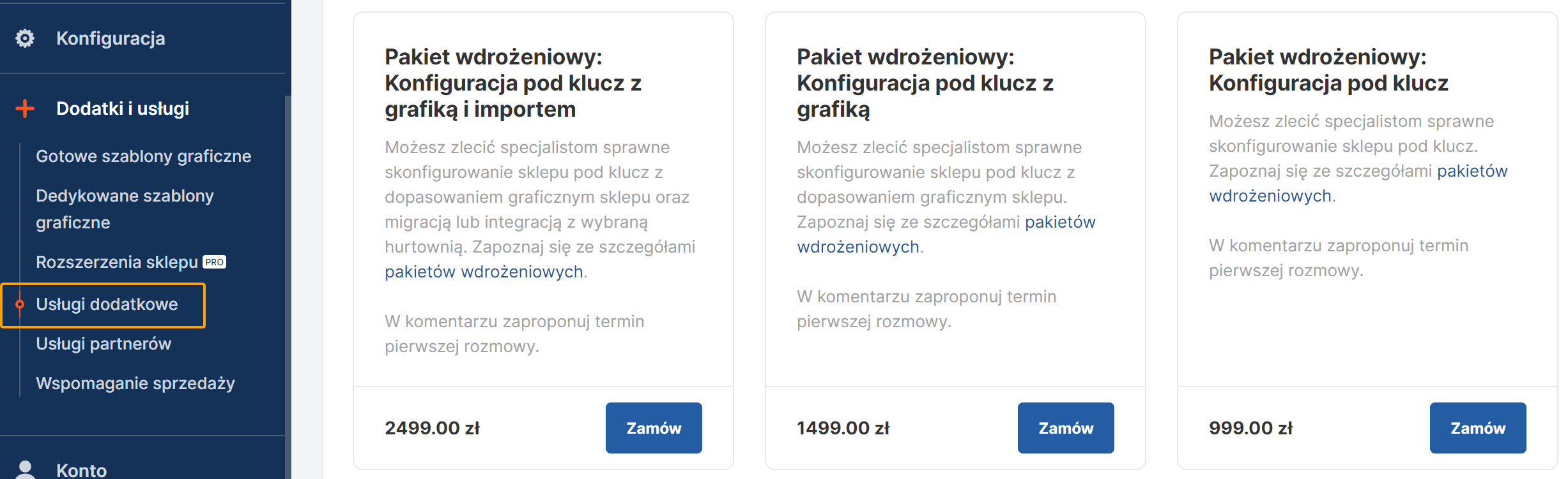 Odświeżony wygląd zamawiania usług dodatkowych