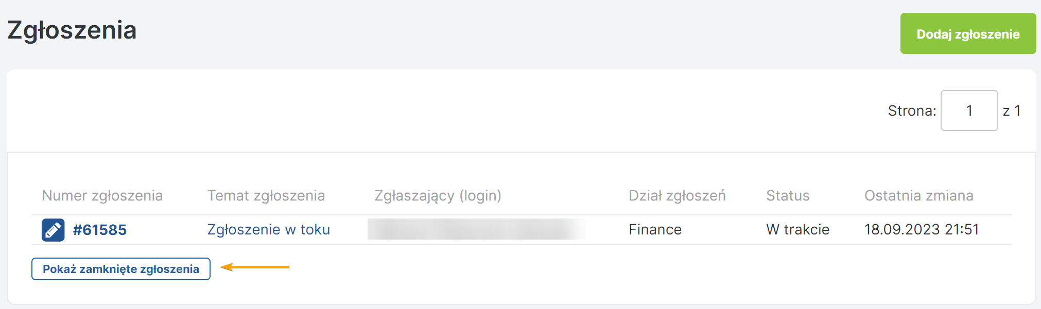 Lista zgłoszeń zamkniętych
