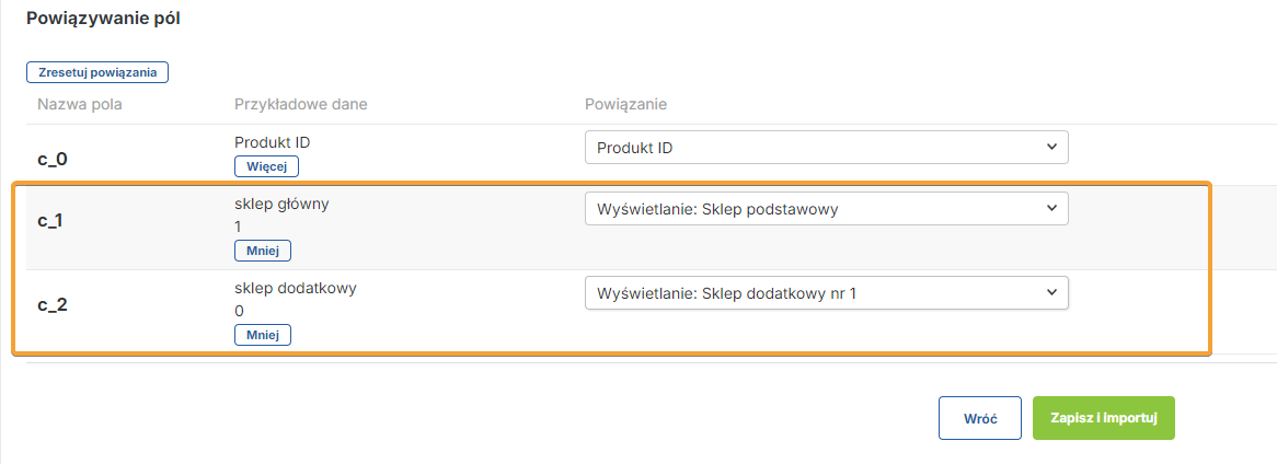 Podczas importu produktów do sklepu z pliku CSV, dodaliśmy możliwość określania, w którym sklepie (głównym lub dodatkowym) ma być wyświetlany dany produkt. W pliku CSV należy dodać kolumny, które wskażą, czy produkt ma być widoczny w sklepie głównym  lub dodatkowym. Następnie, w integratorze, należy wybrać odpowiednie pola wyświetlania produktów, w zależności od sklepu. Ta funkcjonalność jest dostępna tylko wtedy, gdy w systemie istnieje sklep dodatkowy.