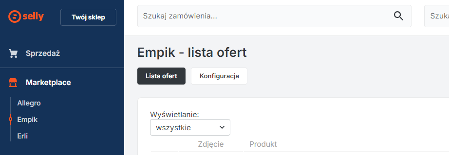 Dodaliśmy nowy moduł Marketplaces, który ułatwia zarządzanie integracjami z platformami sprzedażowymi, takimi jak Empik, Erli czy Allegro (funkcjonalność Allegro pozostała bez zmian). Pojawiła się nowa zakładka Marketplace w panelu zarządzania, umożliwiająca integrację z platformami sprzedażowymi takimi jak Allegro, Empik oraz Erli. W tej sekcji możesz zarządzać ofertami, konfigurować konta i dostosowywać parametry dla poszczególnych rynków. Oto kluczowe funkcje Empiku oraz Erli: