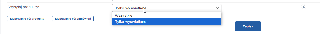 • Tylko wyświetlane – aby importować tylko produkty widoczne w sklepie.