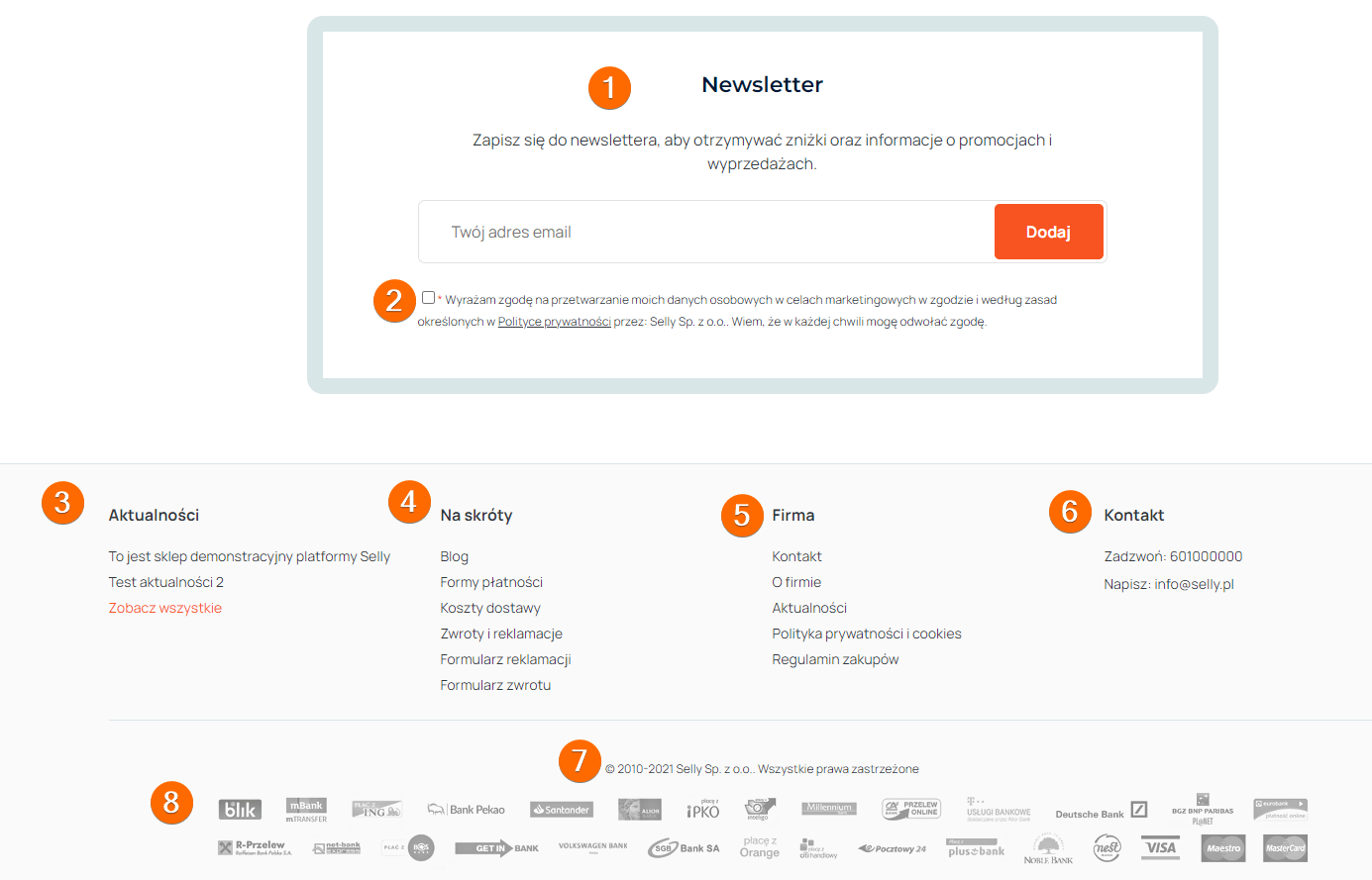 - menu: Wygląd i treści> Bloki HTML – edytuj element KLAUZULA_NEWSLETTER_ZGODA