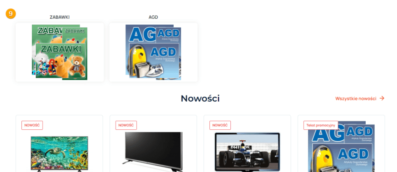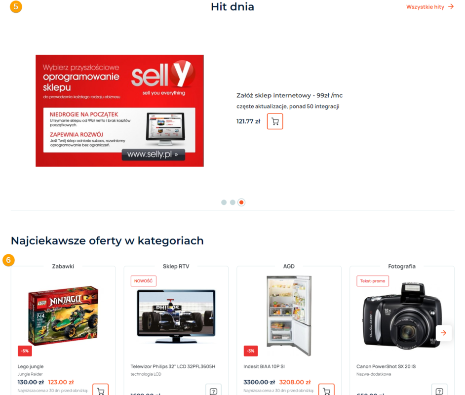 - NAJCIEKAWSZE OFERTY W KATEGORIACH: produkty oznaczone jako „Promocja na stronie głównej”.