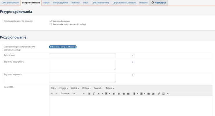 Edycja produktów – sklepy dodatkowe https://demo.selly.pl/adm/?a=produkty.produktMultisklepy&id=46001