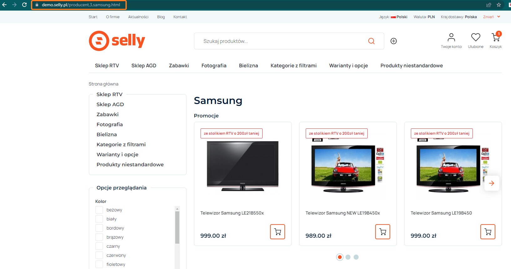 Po zmianie prefiksu na „producent” w sekcji pozycjonowanie, zmianie ulegnie również link prowadzący do strony z produktami producenta.