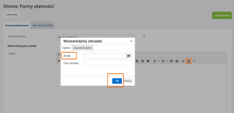 7.Jeśli posiadasz już stronę dotyczącą płatności, możesz na niej dodać treść – edytuj ją i umieść