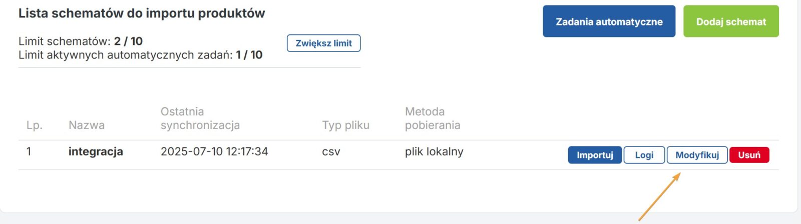 Na liście schematów kliknij w Modyfikuj przy dodanym schemacie.