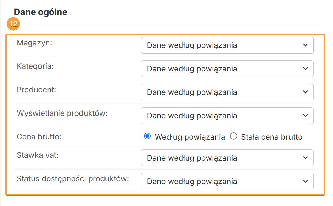 Wybierając inną opcję niż Dane według powiązania  zastosujesz wspólne wartości do wszystkich importowanych pozycji. Jeżeli wybierzesz np. opcję Stawka vat  to importer zastosuje ją dla wszystkich importowanych produktów.