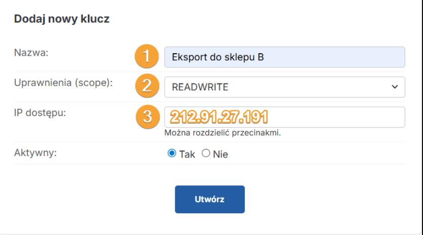 Aby dodać nowy klucz API, należy wykonać poniższe kroki: