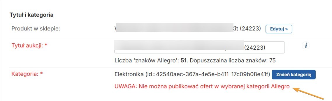W przypadku wyboru kategorii głównej otrzymasz odpowiedni komunikat, a podczas wystawiania aukcji Allegro zwróci błąd. „„Dane nie zostały zapisane. Błędy po wywołaniu POST sale/product-offers w metodzie auctionSave: Brak dostępu do danego zasobu. Kod błędu: AccessDenied” „