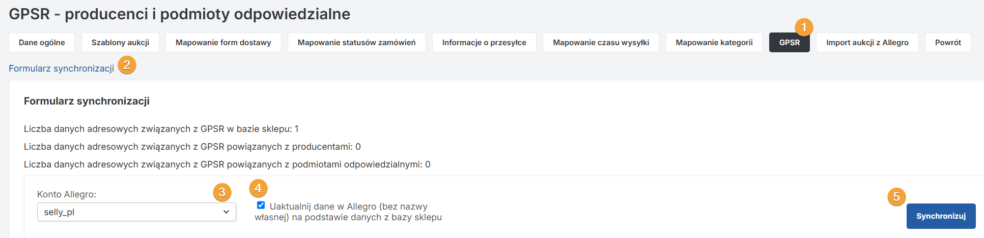- W panelu: Konfiguracja → Integracje → Allegro → GPSR.