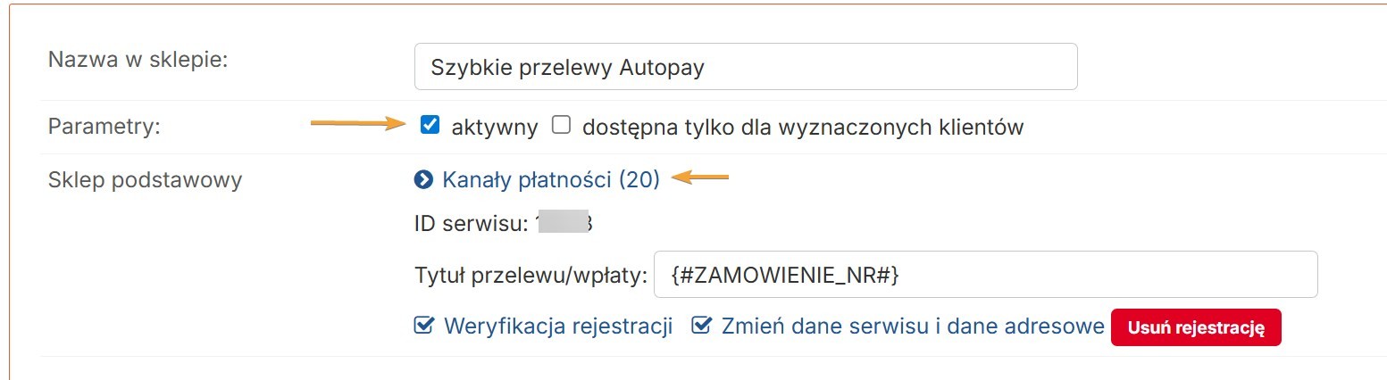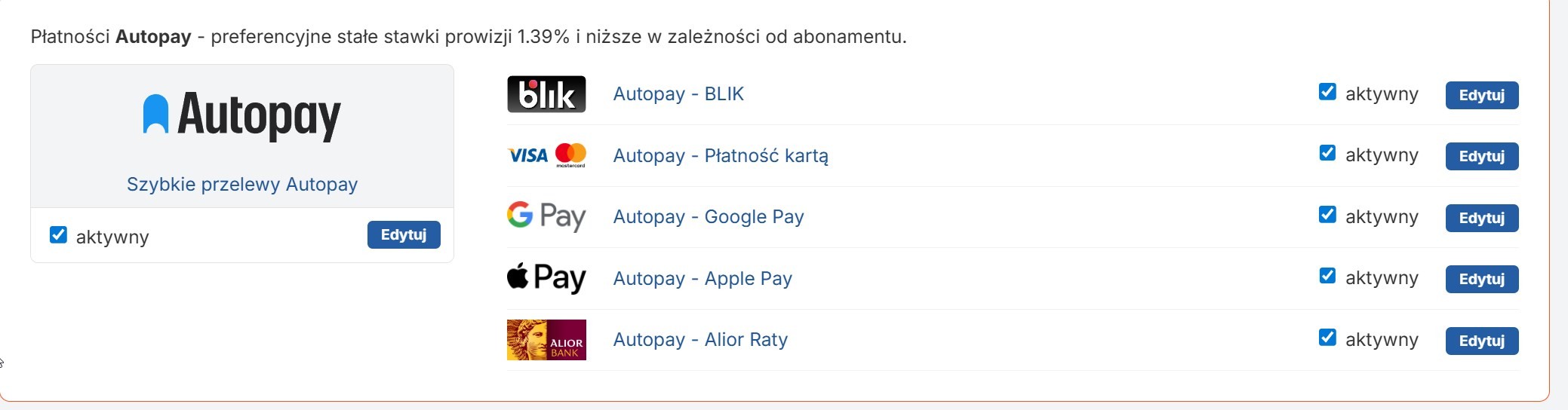 Po udanej weryfikacji konta przez Autopay, należy ręcznie włączyć płatność i dostosować jej ustawienia w panelu sklepu.