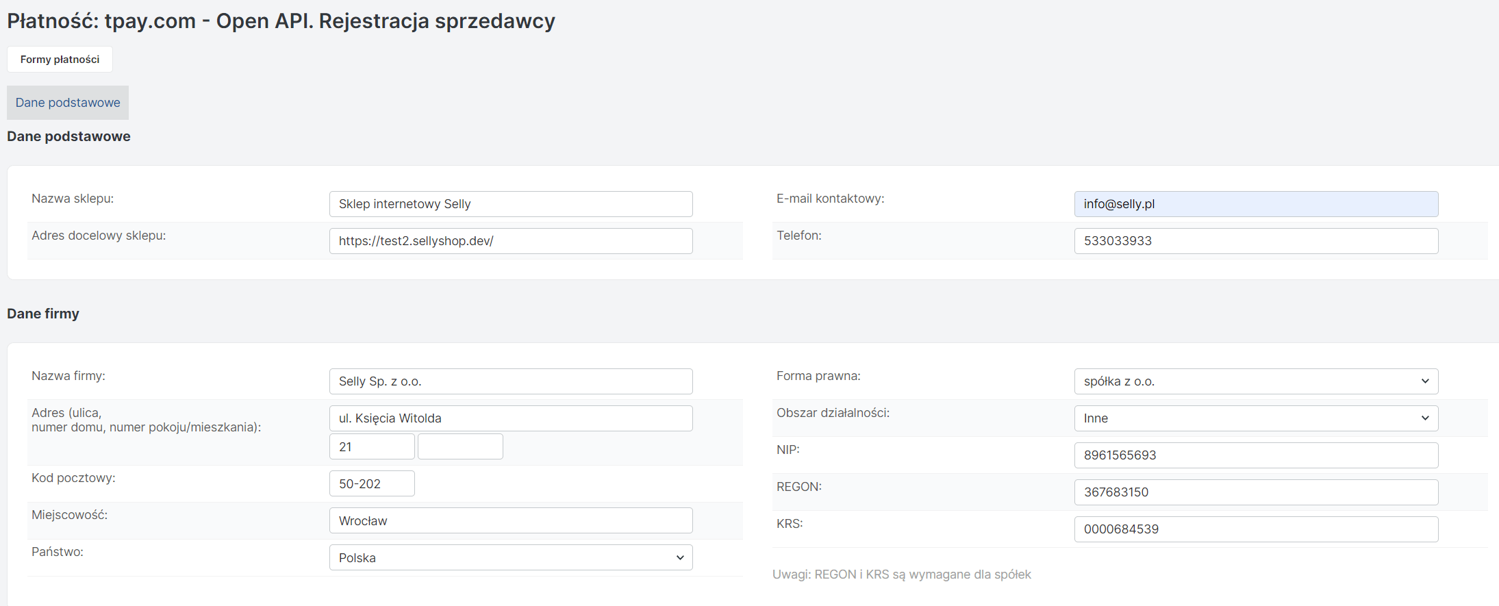 - REGON i KRS: Te pola są wymagane dla spółek. Wpisz odpowiednie numery rejestrowe firmy.