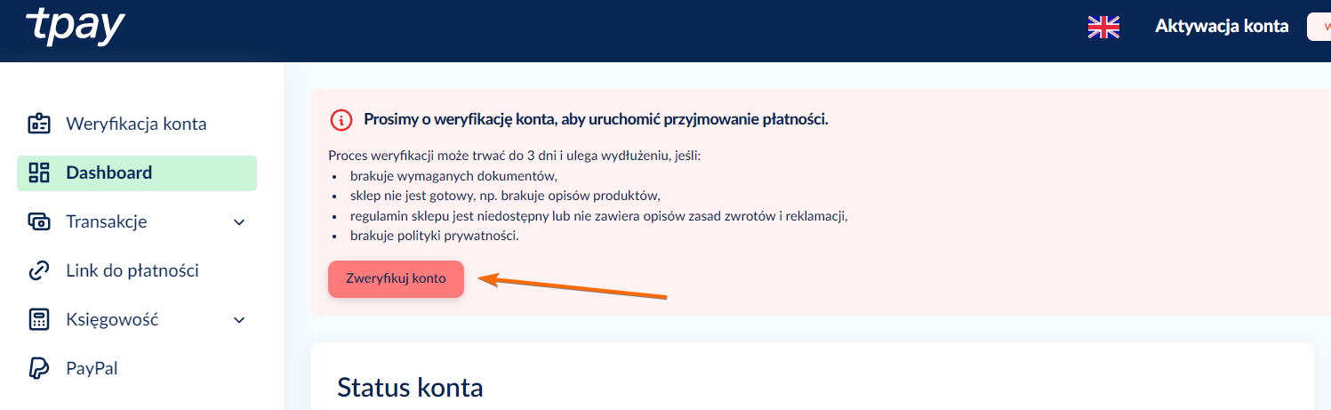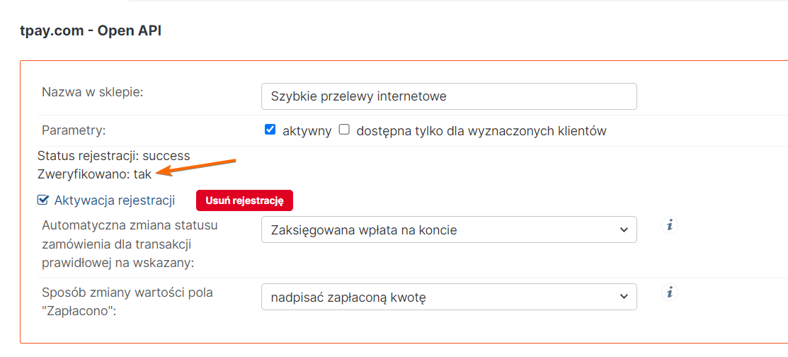? Po zweryfikowaniu rejestracji przez Tpay kiedy następuje aktywacja płatności w sklepie?